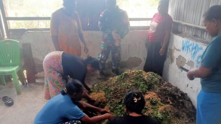 Babinsa Bersama PKK Desa Umaklaran Laksanakan Praktek Pembuatan Pupuk Bokashi