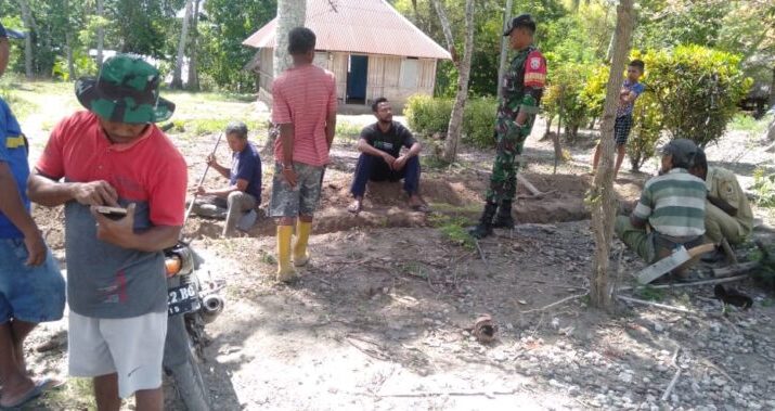 KUPANG-AMARASI – Babinsa Koramil 1604-04/Amarasi Serka Hery Sujibto melaksanakan karya bakti (Karbak) Bersama warga masyarakat RT.002 RW. 001 Desa Oenoni II, Kecamatan Amarasi, Kabupaten
