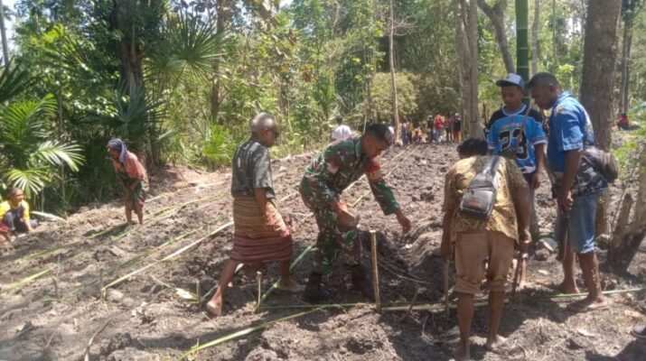 Fatukopa _ Pada Hari Senin 29 September 2025 Bertempat dikebun Poktan Berseba Dusun A Desa Fatukopa, Babinsa Koramil 1621-02/Abanteng Kopda Ahas Soinbala , membantu