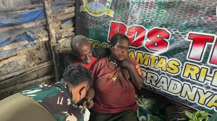 Puncak Jaya, Papua — Di tengah terbatasnya akses pelayanan kesehatan di wilayah pegunungan Papua, Prajurit Satgas Yonif 743/PSY Pos Tinolok terus hadir menjadi harapan
