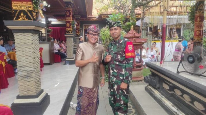 Klungkung,- Dalam berbagai kegiatan upacara keagamaan di wilayah binaannya, Babinsa kamasan Kopda Kadek Agus selalu mengedepankan sinergitas dan koordinasi bersama Bhabinkamtibmas dan para pecalang