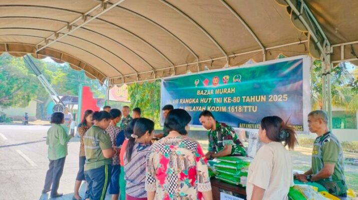 NTT-Kefamenanu., Bertempat di halaman Makodim 1618/TTU Jl. Ahmad Yani, Kelurahan Kefa Selatan, Kecamatan Kota Kefamenanu, Kabupaten TTU, Kodim 1618/TTU menggelar Bazar Murah dalam rangka