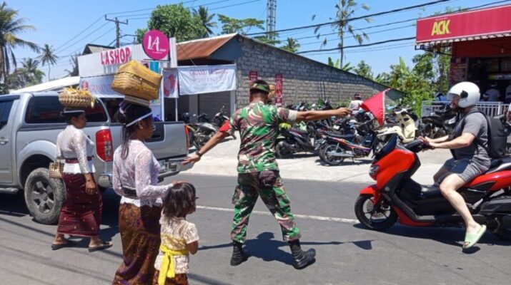 Buleleng – Dalam rangka menjaga keamanan dan ketertiban masyarakat, Babinsa Koramil 1609-01/Buleleng Serda Pedro Lopes melaksanakan patroli wilayah sekaligus pengamanan kegiatan upacara Piodalan di