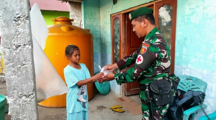 Belu, – Satuan Tugas Pengamanan Perbatasan (Satgas Pamtas) RI–RDTL Yonarmed 12 Kostrad melaksanakan kegiatan pembagian telur kepada masyarakat di sejumlah desa perbatasan Kabupaten Belu