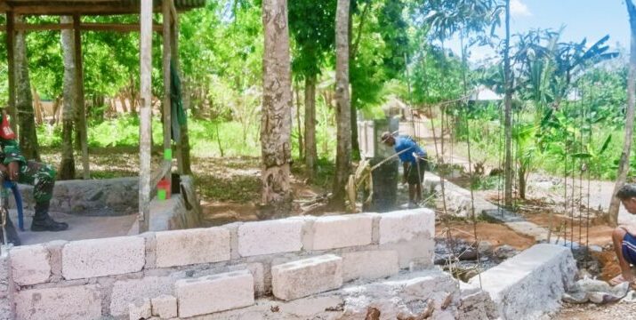 KUPANG-BONMUTI – Sebagai wujud memberikan dukungannya terhadap program pembangunan Desa, Babinsa Koramil 1604-03/Naikliu Sertu Didit Sumanto memantau progres pekerjaan pembangunan Pagar Kantor Desa Bonmuti,