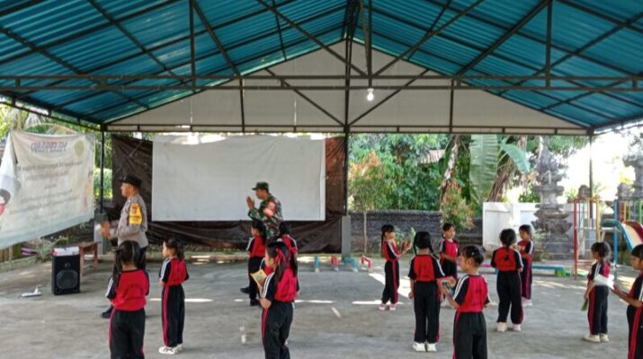 Gianyar – Payangan, Sabtu (4/10/2025) Sebagai wujud dukungan dalam dunia pendidikan, Babinsa Desa Bukian Koramil 1616-07/Payangan, Serda I Kadek Sudiksa, bersama Bhabinkamtibmas Aiptu I