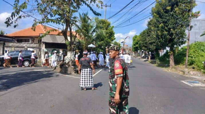 Gianyar – Blahbatuh, Sabtu (4/10/2025) Dalam rangka menjaga keamanan dan kondusifitas kegiatan adat di wilayah binaannya, Babinsa Desa Bona Koramil 1616-04/Blahbatuh Serda I Nyoman