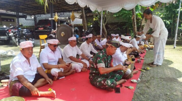 Babinsa Koramil Ubud Turut Sukseskan Upacara Penyucian Gedung Baru BUMDes Petulu