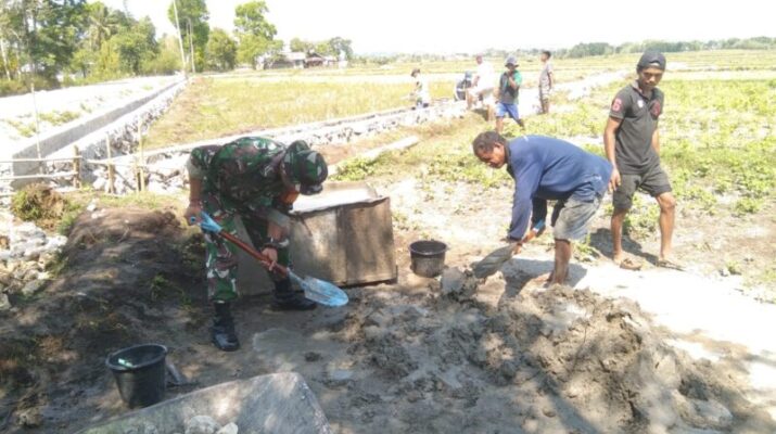 NTT-Sumba Timur.Dalam rangka mendukung ketahanan pangan dan memastikan kelancaran sistem irigasi pertanian, Babinsa Koramil 06/Karera Kodim 1601/Sumba Timur, Pratu Aldy Kore, melaksanakan pendampingan bersama