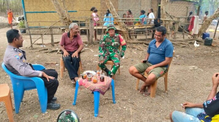 SUMBA TENGAH – Babinsa Koramil 03/Katikutana Kodim 1613/Sumba Barat, Sertu Ilham Lahiya, melaksanakan kegiatan komunikasi sosial (komsos) dengan masyarakat di Desa Wendewa Timur, Kecamatan