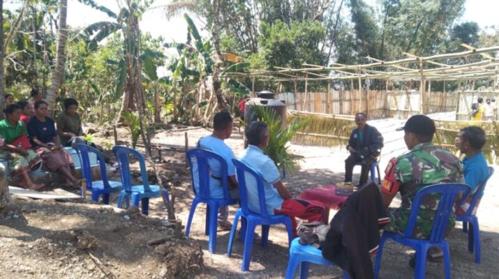 NTT-KUPANG, – Babinsa Desa Bitobe Koramil 1604-03/Naikliu, Koptu Ardiwin melaksanakan kegiatan komunikasi sosial (Komsos) bersama Kepala Desa dan masyarakat setempat di Desa Bitobe, Kecamatan