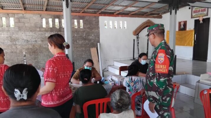 SERIRIT, (07/10/2025) — Dalam rangka mendukung program pemerintah di bidang kesehatan masyarakat, Babinsa Desa Kalianget, Serka Nyoman Arsana, bersama Bhabinkamtibmas Desa Kalianget, Aipda I
