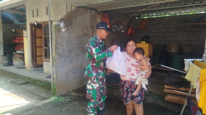 Peduli Warga, Babinsa Desa Kukuh Serahkan Bantuan Sembako