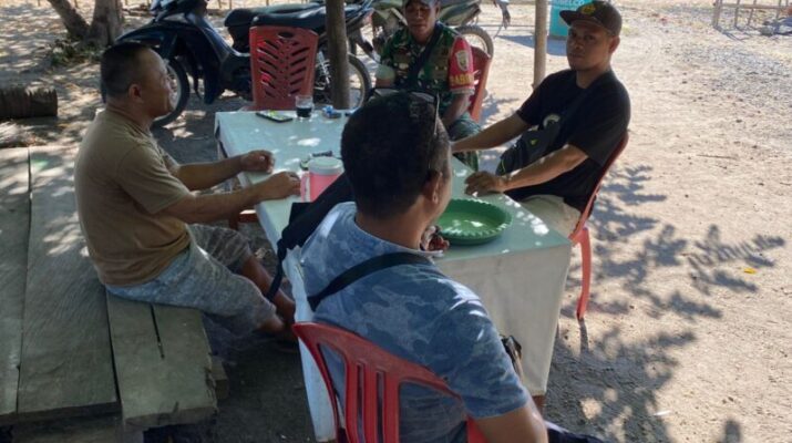 Sinergi Babinsa dan Bhabinkamtibmas Desa Seraya Timur amankan kegiatan di lokasi pembangunan Kampung Nelayan Merah Putih.