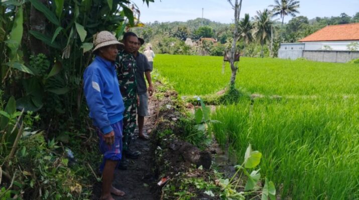 KARANGASEM – Babinsa Desa Sibetan Koramil 1623-07/Bebandem Serka Nyoman Darmada melaksanakan pemantauan pengerjaan saluran irigasi tersier Subak Gantalan 1, di Banjar Dinas Kreteg Desa