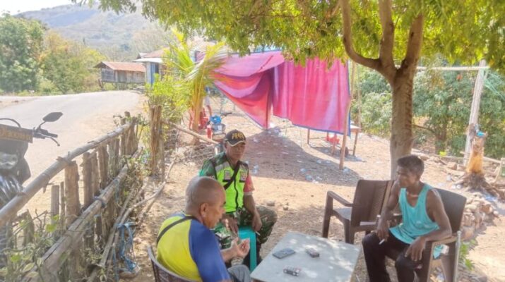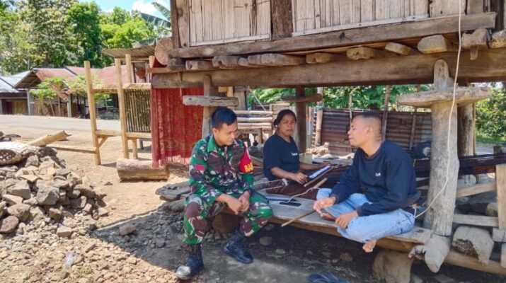 Ende, NTT – Dalam rangka menjalankan tugas pokok sebagai aparat teritorial, Babinsa Koramil 1602-02/Wolowaru, Pratu Haris Liga, melaksanakan kegiatan Komunikasi Sosial (Komsos) dan Pengamanan