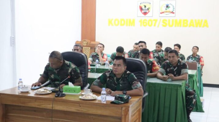 NTB – Sumbawa Besar, Komandan Kodim 1607/Sumbawa bersama para Babinsa perwakilan dari tiap Koramil jajaran Kodim 1607/Sumbawa mengikuti rapat secara Hybrid yang membahas tindak