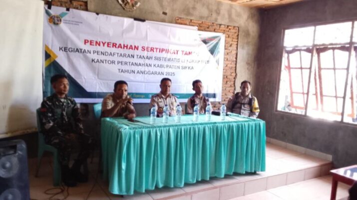 NTT SIKKA– Babinsa Koramil 1603-05/Bola, Kodim 1603/Sikka, Pratu Yumelson Tibe Ceme melaksanakan kegiatan pendampingan dalam acara Penyerahan Sertifikat Tanah dan Pendaftaran Tanah Sistematis Lengkap