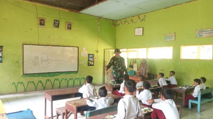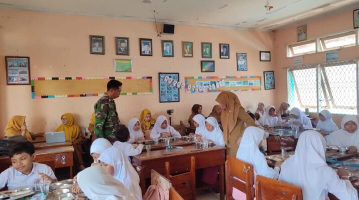 Bima,Sape _ Pada hari Selasa, 14 Oktober 2025, Serka Jamaluddin Danpos Lambu Koramil 1608-03/Sape mendampingi kegiatan pembagian Makan Bergizi Gratis (MBG) yang diselenggarakan oleh