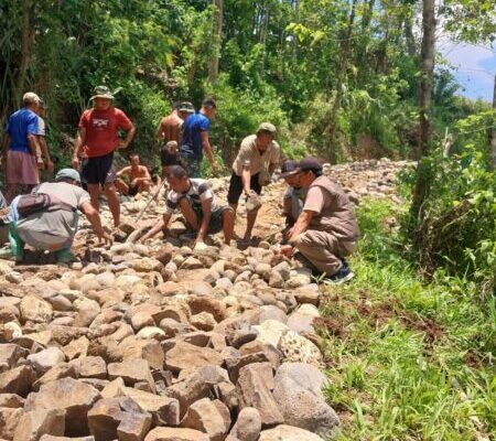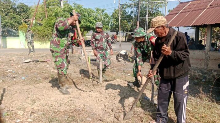 Bima – Dalam rangka mendukung program pemerintah, Anggota Koramil 1608-04/Woha Kodim 1608/Bima bersama masyarakat Desa Donggobolo, Kecamatan Woha, Kabupaten Bima, melaksanakan kegiatan kerja bakti