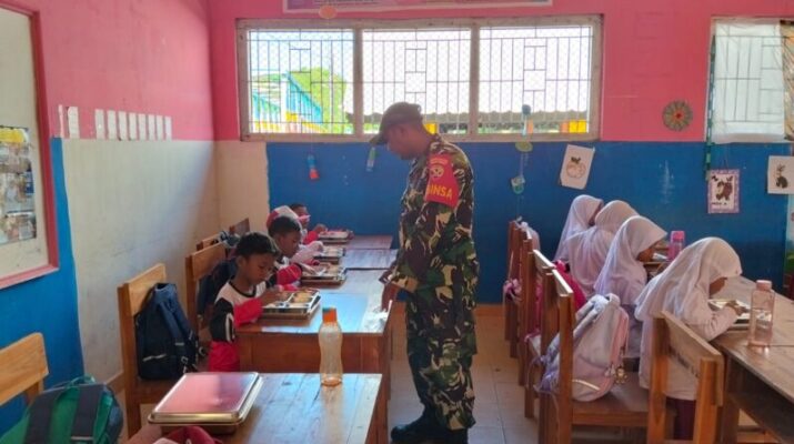 Sumbawa Barat, NTB – Babinsa Desa Goa Koramil 1628-05/Jereweh, Koptu Agus Dermawan, melaksanakan kegiatan pendampingan Program Makan Bergizi Gratis (MBG) yang dilaksanakan di SD