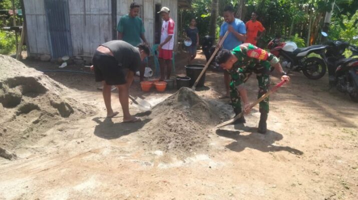 Ende, Babinsa Koramil 1602-04/Maurole, Pratu Paskalis Saputra, melaksanakan kegiatan karya bakti berupa pembangunan Rumah Layak Huni serta kegiatan Komunikasi Sosial (Komsos), Monitoring, dan Pengamanan