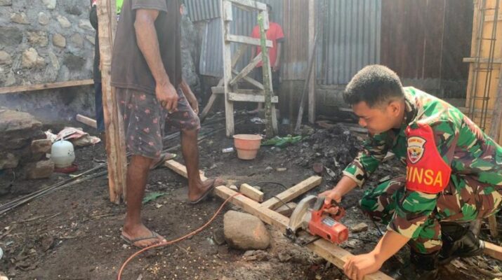 Babinsa Koramil 1624-02/Adonara Bantu Bangun Rumah Warga, Wujud Kepedulian dan Kebersamaan