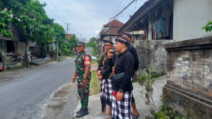 Gianyar – Payangan, Senin (20/10/2025) Dalam rangka mendukung kelancaran pelaksanaan upacara adat Karya Agung, Babinsa Desa Bresela Koramil 1616-07/Payangan Pelda I Wayan Budiarta bersama