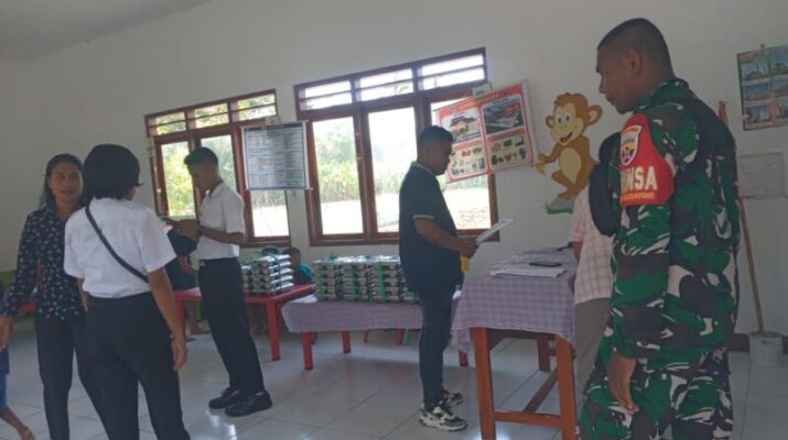 KODIM 1605/BELU, Babinsa Koramil 1605-09/Biudukfoho Sertu Henry Rumamelete melaksanakan pendampingan penyaluran program makan bergizi gratis (MBG) pada kelompok bermain Paud Stevani di Dusun lorosae,