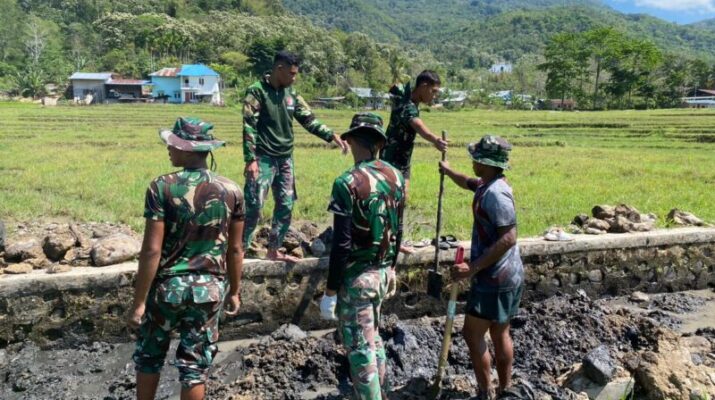 Satgas TMMD Ke-126 Percepat Pekerjaan Saluran Irigasi Pu’un Keo, Progres Capai 75 Persen