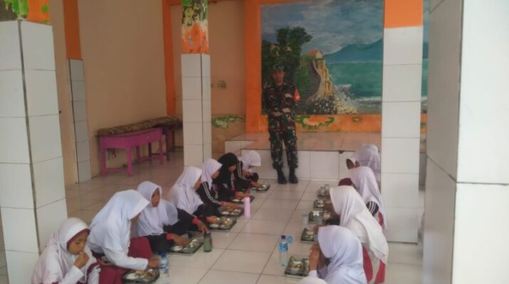 Wujud Kepedulian TNI, Serda Yakub Dampingi Anak-Anak SDN Dasan Anyar Santap Bergizi