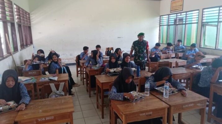Sumbawa Barat — NTB, Dalam upaya mendukung program pemerintah untuk meningkatkan gizi anak sekolah, Babinsa Kelurahan Kuang, Koramil 1628-01/Taliwang, Serka Bustanuddin turut aktif melakukan