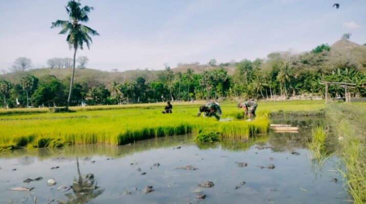 NTT-Sumba Timur,Babinsa Koramil 05/Waingapu, Kodim 1601/Sumba Timur, Sertu M. Ali dan Sertu Darusman, melaksanakan pendampingan kepada para petani di Kelurahan Lambanapu, Kecamatan Kambera, Kabupaten