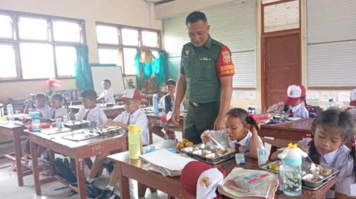 Babinsa Desa Tembuku Dampingi Penyaluran Makanan Bergizi Gratis bagi Siswa Sekolah Dasar