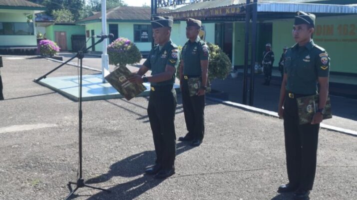 NTT- Sumba Barat Daya/ Dandim 1629/SBD Letkol Inf Deny Ahdiani Amir M.Han, memimpin langsung acara Korp Raport Pelepasan Pindah Satuan Satu Prajurit di Makodim