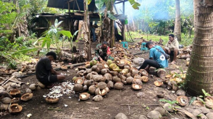 Flotim – Dalam rangka mempererat hubungan dengan masyarakat di wilayah binaan, Babinsa Koramil 1624-02/Adonara, Kopda Kanisius Poli melaksanakan kegiatan komunikasi sosial (Komsos) sekaligus membantu