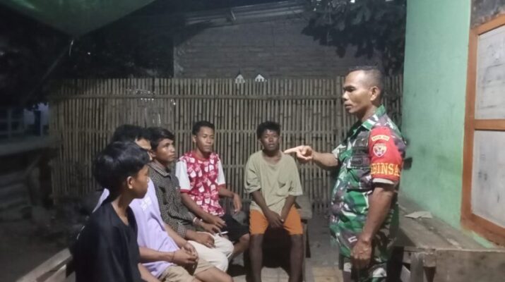 NTT-KUPANG, – Babinsa Koramil 1604-04/Amarasi wilayah binaan Desa Niukbaun, Kecamatan Amarasi Barat, Kabupaten Kupang, Sertu Sefi Zeth Pandie melaksanakan kegiatan komunikasi sosial (Komsos) bersama