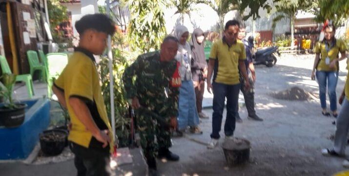 NTT-KUPANG, – Dalam semangat gotong royong dan kepedulian terhadap lingkungan, Babinsa Fatululi Koramil 1604-01/Kupang, Serka Yusuf Tafuli bersama mahasiswa Kuliah Kerja Nyata (KKN) melaksanakan