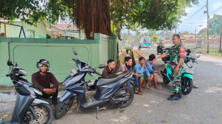 Ende Utara, Ende – Babinsa Koramil 1602-01/Ende, Sertu Ersan, melaksanakan kegiatan Monitoring Wilayah, Komunikasi Sosial (Komsos), dan Pamwil di Jalan Hatta, Kelurahan Kota Raja,