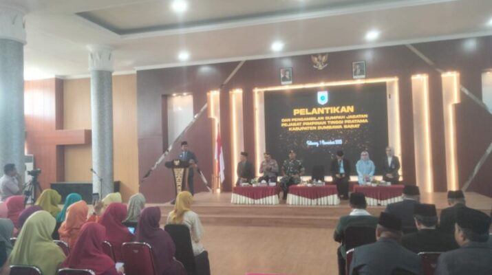 Sumbawa Barat – NTB, gentra.co.id – Komandan Kodim 1628/KSB, Letkol Inf Rendra Agit Trisnawan menghadiri Pelantikan dan Pengambilan Sumpah Jabatan Pejabat Pimpinan Tinggi Pratama