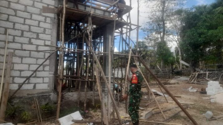 Babinsa Batutua Bantu Warga Bangun Rumah di Desa Netenaen