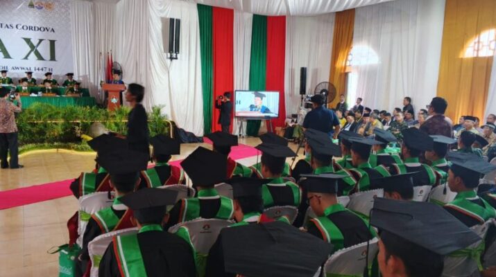 Sumbawa Barat – NTB, Babinsa Kelurahan Menala, Koramil 1628-01/Taliwang, Serda A. Rahman, hadir dan mendampingi jalannya Wisuda XI S1 Universitas CORDOVA yang digelar di