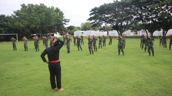 NTB – Sumbawa Besar, Dalam rangka meningkatkan kemampuan bela diri, menumbuhkan semangat juang, serta membina kedisiplinan prajurit, Kodim 1607/Sumbawa menggelar latihan Pencak Silat Militer