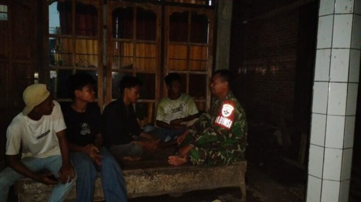 Dompu, NTB — Babinsa Koramil 1614-01/Dompu Kodim 1614/Dompu, Serma Arif Rahman, bersama anggota Karang Taruna Desa Sorisakolo, melaksanakan kegiatan ronda malam dan kongkow bersama