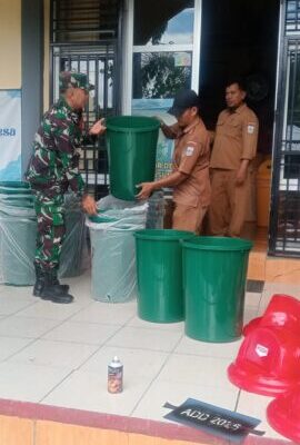 Sumbawa Barat – NTB, Babinsa Desa Lamusung Koramil 1628-03/Seteluk, Serda Lalu Rupawan, menjadi garda terdepan dalam kegiatan penghitungan bak sampah plastik yang akan dibagikan