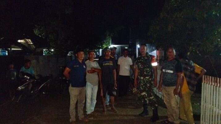Dompu, NTB — Babinsa Koramil 1614-01/Dompu, Koptu Abubakar, melaksanakan kegiatan ronda malam bersama Karang Taruna dan warga binaan di RT 08 Lingkungan Soriwono pada