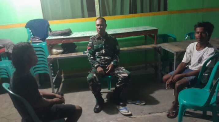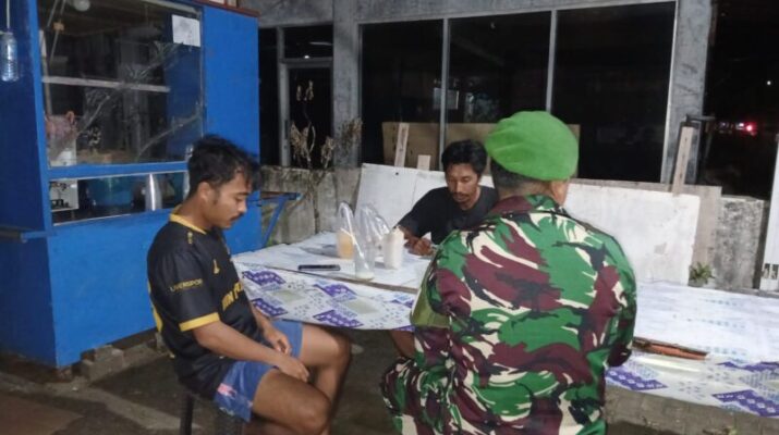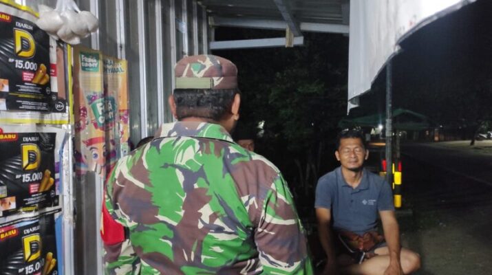 Sumbawa Barat, NTB – Anggota piket Koramil 1628-03/Seteluk, Sertu Ashar, melaksanakan kegiatan patroli malam sekaligus berinteraksi dengan masyarakat (kongkow-kongkow) di sejumlah titik wilayah Kecamatan