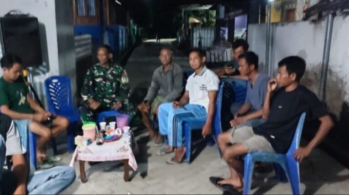 Sumbawa Barat, NTB – Anggota piket Koramil 1628-03/Seteluk, Sertu Ashar, melaksanakan kegiatan patroli malam sekaligus berinteraksi dengan masyarakat (kongkow-kongkow) di sejumlah titik wilayah Kecamatan
