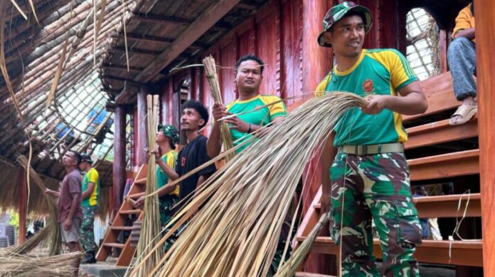 Gotong Royong Prajurit dan Masyarakat: Rumah Adat Kolibein Berdiri di Alas Selatan
