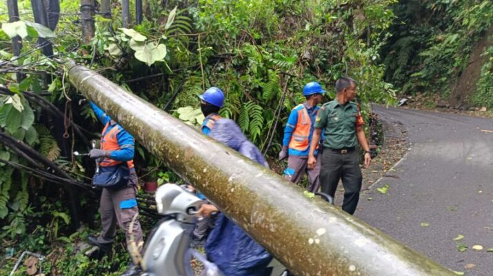 Respons Cepat Babinsa Keliki Amankan Lokasi Bencana Tiang Beton PLN yang Tumbang